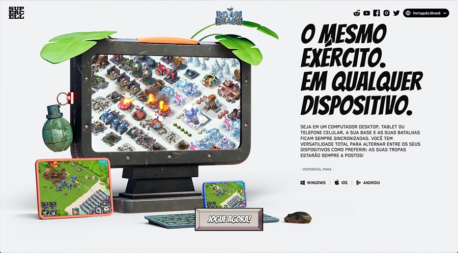 A versão de computador está disponível através do novo launcher oficial da Supercell. É um jogo nativo (não precisa de emuladores pesados) e mantém toda a essência que conhecemos. Veja como é simples baixar e jogar Boom Beach no PC: